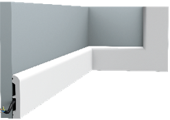 Карнизы из полиуретана для скрытого освещения украсят любой интерьер, при помощи них достигаются разнообразные стилистические решения пространства. Асимметричная форма карнизов визуально изменяет объем помещения, а полости на тыльной стороне позволяют размещать проводку и различные источники освещения, в том числе светодиодные ленты.
